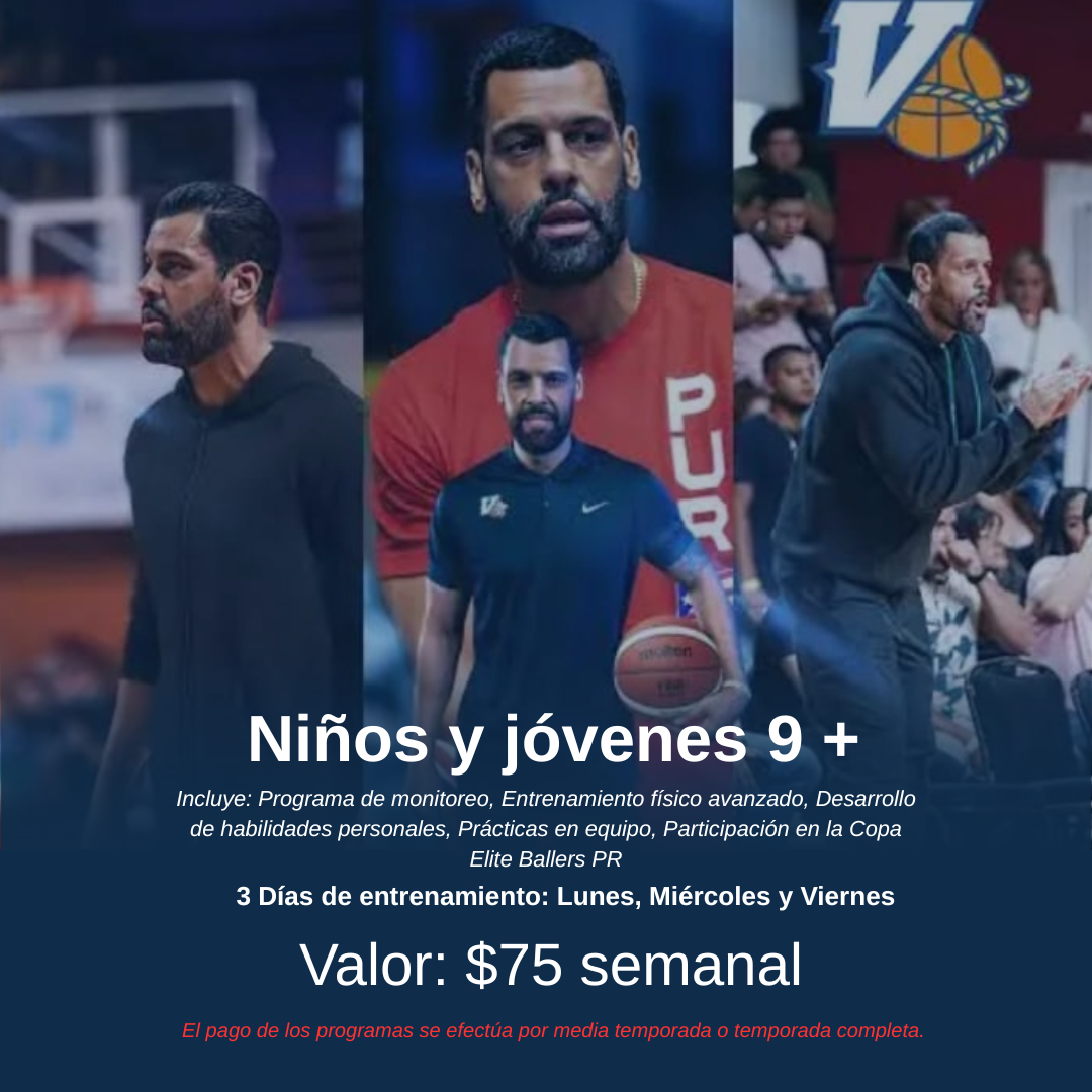 Elite Ballers es un sistema deportivo completo creado para desarrollar atletas a un nivel elite sin tener que irse de Puerto Rico; cubriendo la mayoría de las necesidades que nuestros atletas enfrentan para poder alcanzar su máximo potencial deportivo.